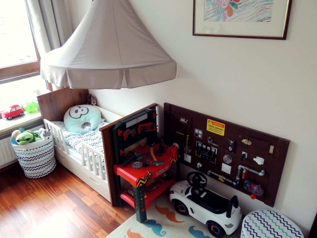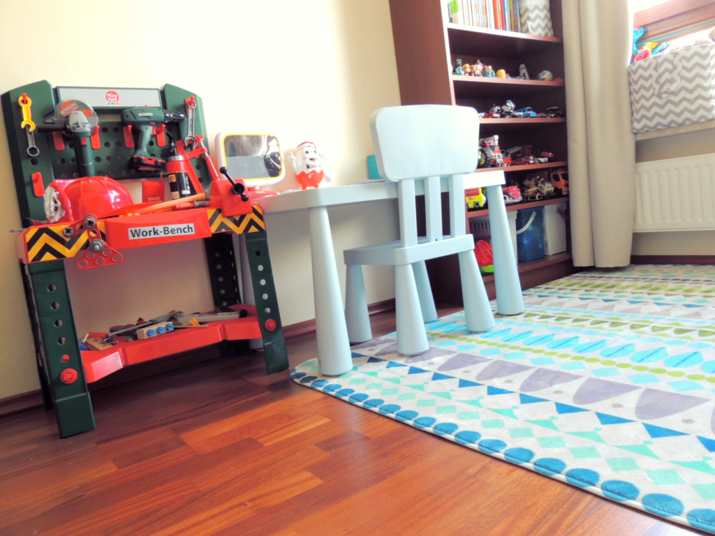 Swoje miejsce zmienił warsztat, a stolik z miejsca wiecznie zawalonego zabawkami stał się miejscem, gdzie moje dziecko z przyjemnością siada, żeby porysować. Dzięki większej przestrzeni Ignaś z dużo większą chęcią przebywa teraz i bawi się w swoim pokoju, co daje nam kilka bezcennych chwil oddechu więcej.
