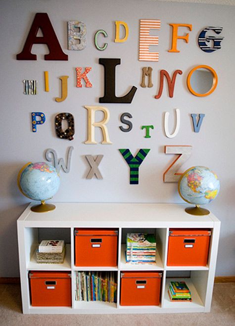 W tym zakresie jestem zwolenniczką prostoty. Bardzo podobają mi się różnokolorowe alfabety, geometryczne naklejki (można je kupić na przykład tutaj: KLIK ) i ramki na zdjęcia. Najmniejszym kosztem można powiesić wydrukowane z internetu i oprawione w ramkę plakaty. Takie jak poniżej możecie znaleźć TU , TU i TU .